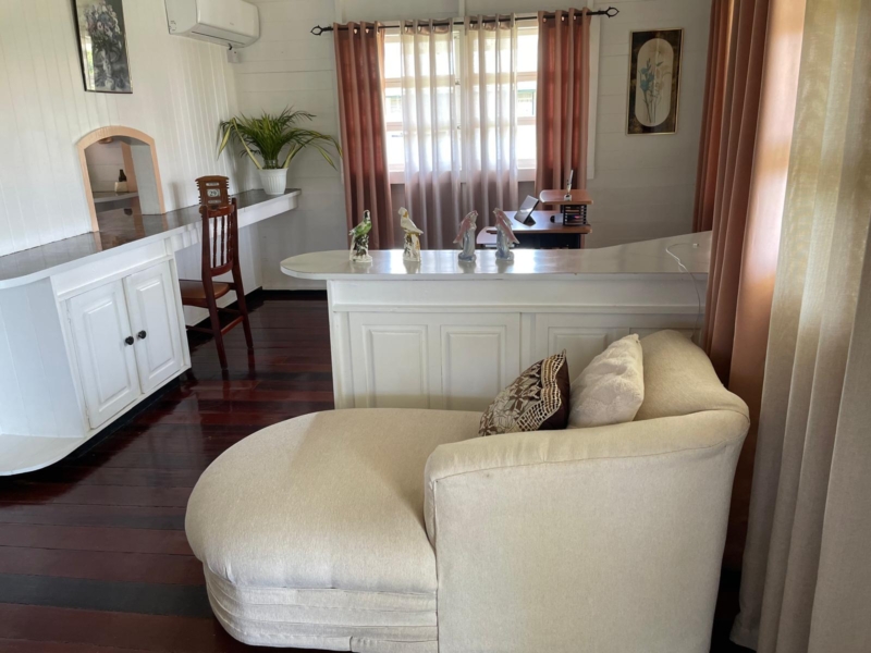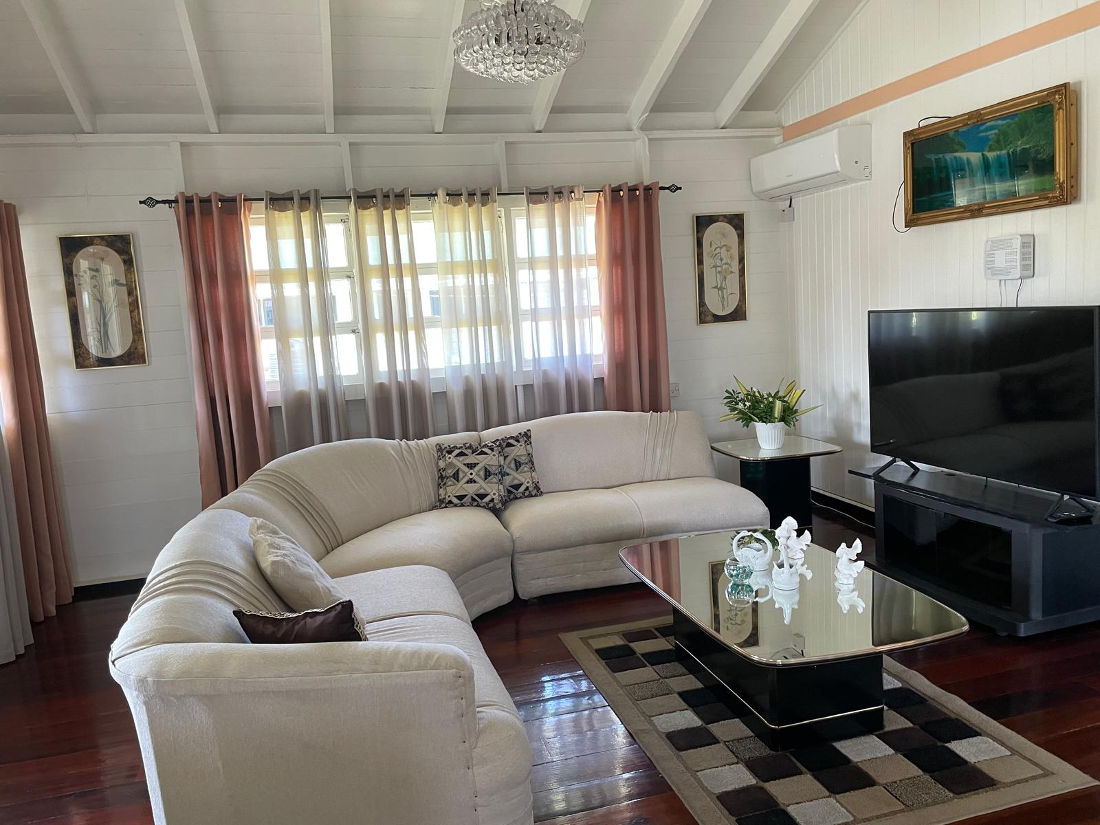 Located in D’Aguiar Park, East Bank Demerara, this charming elevated home features three comfortable bedrooms and two modern bathrooms, ideal for families or professionals seeking a peaceful living environment. The property comes fully furnished and fully air-conditioned, offering a convenient move-in-ready experience. It includes a well-appointed kitchen, spacious living room, and beautifully maintained lawns within a secure gated community. With its welcoming verandah and ample outdoor space, this home provides a comfortable and relaxing lifestyle in a desirable E.B.D location.